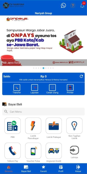 SBPays Nariyah merupakan salahsatu produk dari CV Nariyah yang bergerak dibidang jasa pembayaran online atau yang lebih dikenal dengan layanan Payment Point Online Bank (PPOB).